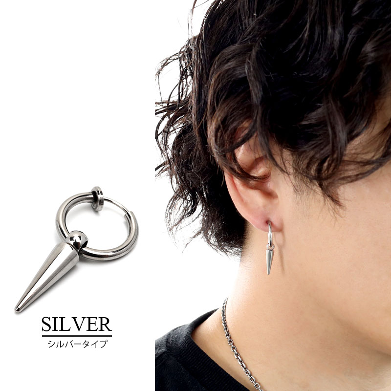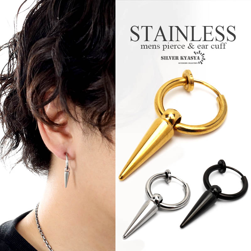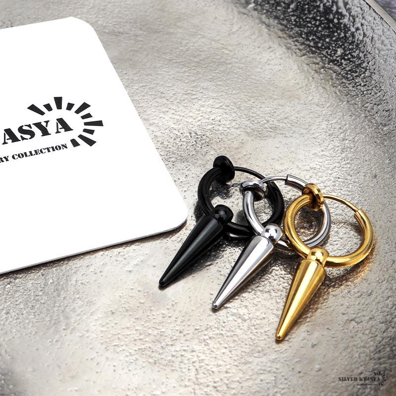 フェイクピアス メンズ スタッズ 鋲 フープピアス イヤーカフ ゴールド シルバー ブラック 3カラー 18K K18 IP 韓流 韓国 ファッション 片耳用 金属アレルギー