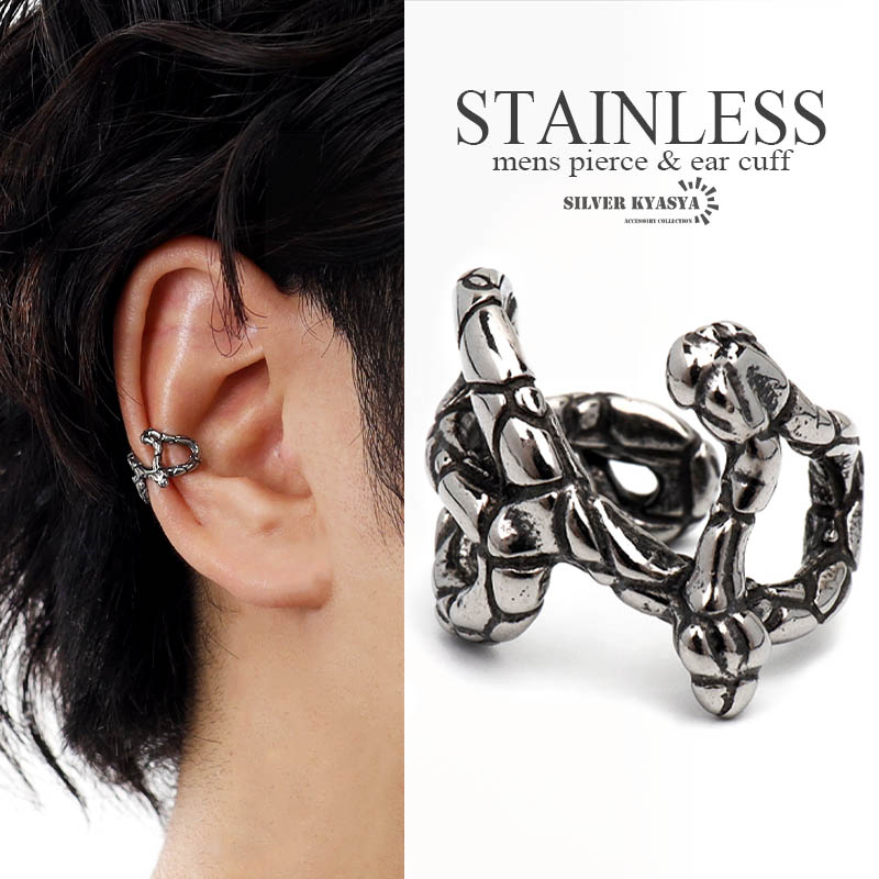 ステンレス スネークイヤーカフ ヘビ 蛇 シルバー 燻し風 イヤカフ イヤーカフス 耳の穴不要 金属アレルギー対応 片耳用 1点