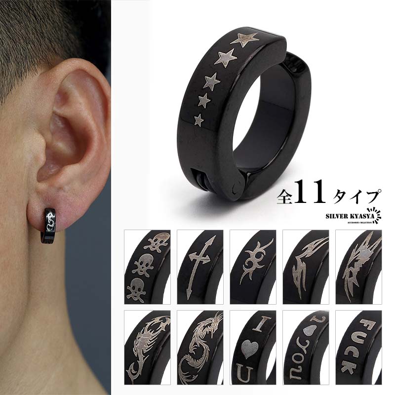 ブラック イヤーカフ メンズ スター クロス 龍 black ピアス ステンレス つけっぱなしOK 片耳