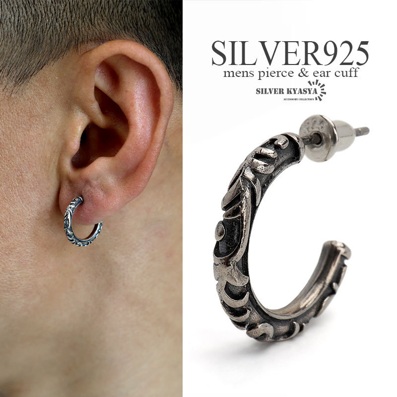 シルバー925 ハーフ フープピアス スクロール 唐草 アラベスクピアス シルバーピアス 金属アレルギー 対応 片耳用
