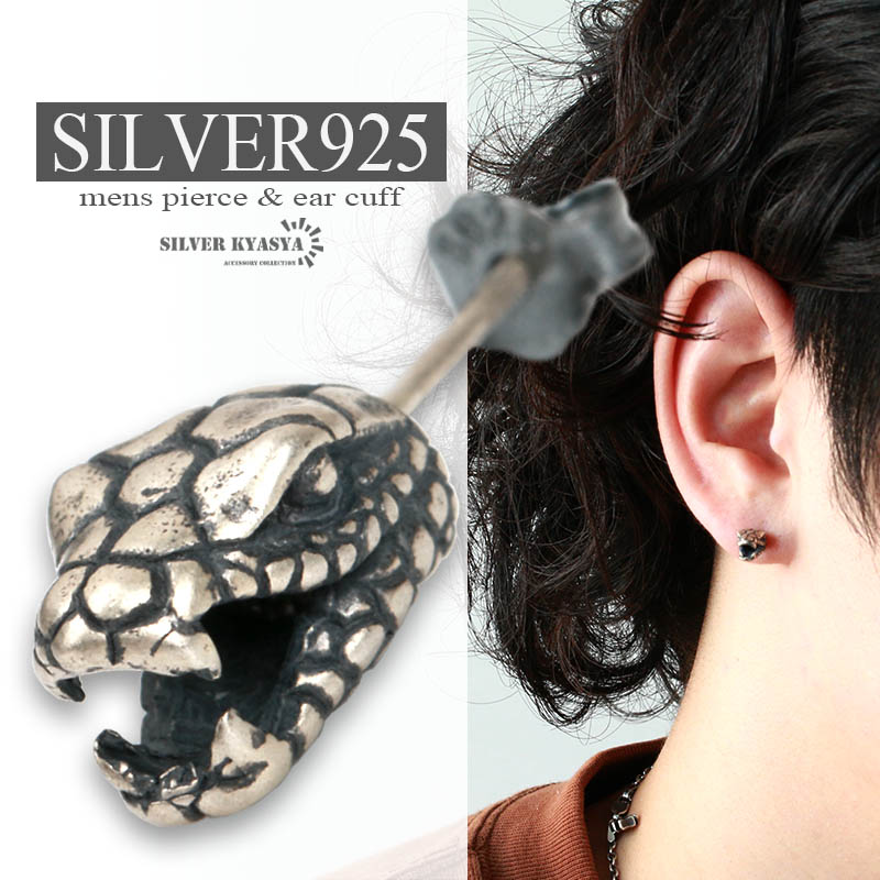 スネークピアス シルバー925 18G スタッドピアス モチーフ アレルギー対応 アニマル 片耳用