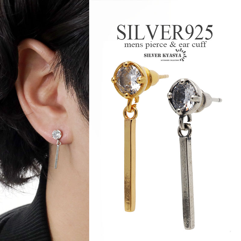 シルバー925 スティックピアス 18mm シンプル メンズ ピアス ドロップピアス ゴールド 18K GP 燻し 韓流 ストリート系 S925 金属アレルギー対応 片耳用 1点