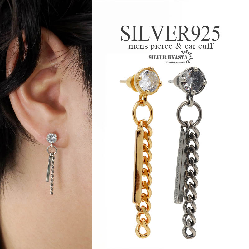 シルバー925 スティックピアス チェーンピアス メンズ ピアス ドロップピアス ゴールド 18K GP 燻し 韓流 ストリート系 S925 金属アレルギー対応 片耳用 1点