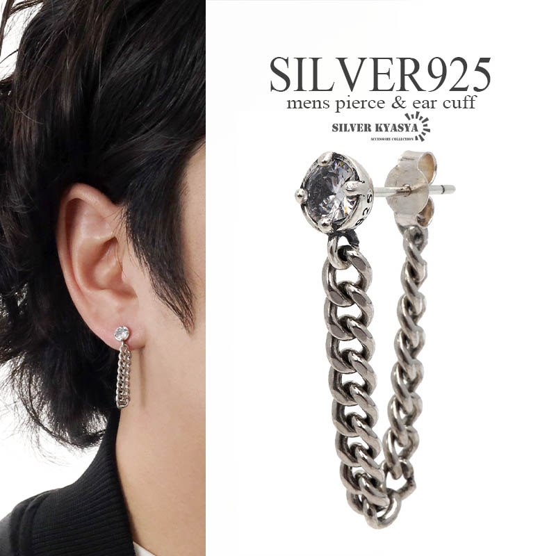シルバー925 喜平チェーンピアス 4mm メンズ ドロップピアス 一粒ピアス S925 金属アレルギー対応 片耳用 1点