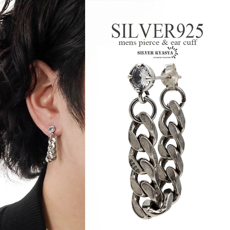 シルバー925 喜平チェーンピアス 6mm メンズ ドロップピアス 一粒ピアス S925 金属アレルギー対応 片耳用 1点