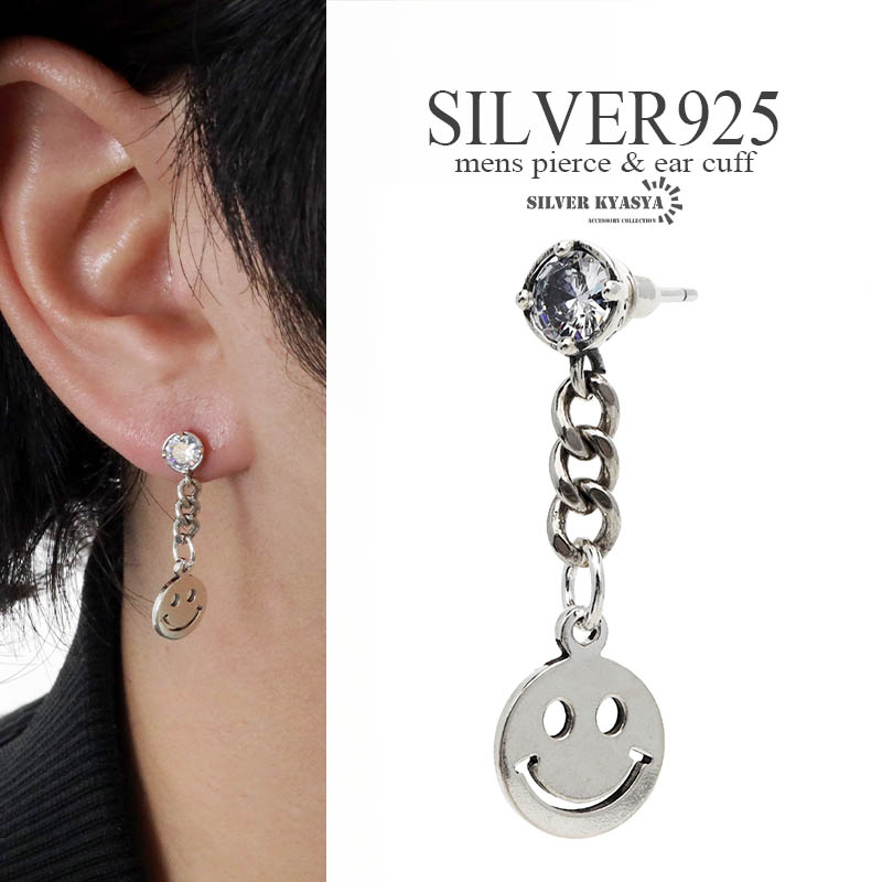 シルバー925 スマイリーピアス チェーンピアス ドロップチェーンドロップピアス 燻し S925 金属アレルギー対応 片耳用 1点