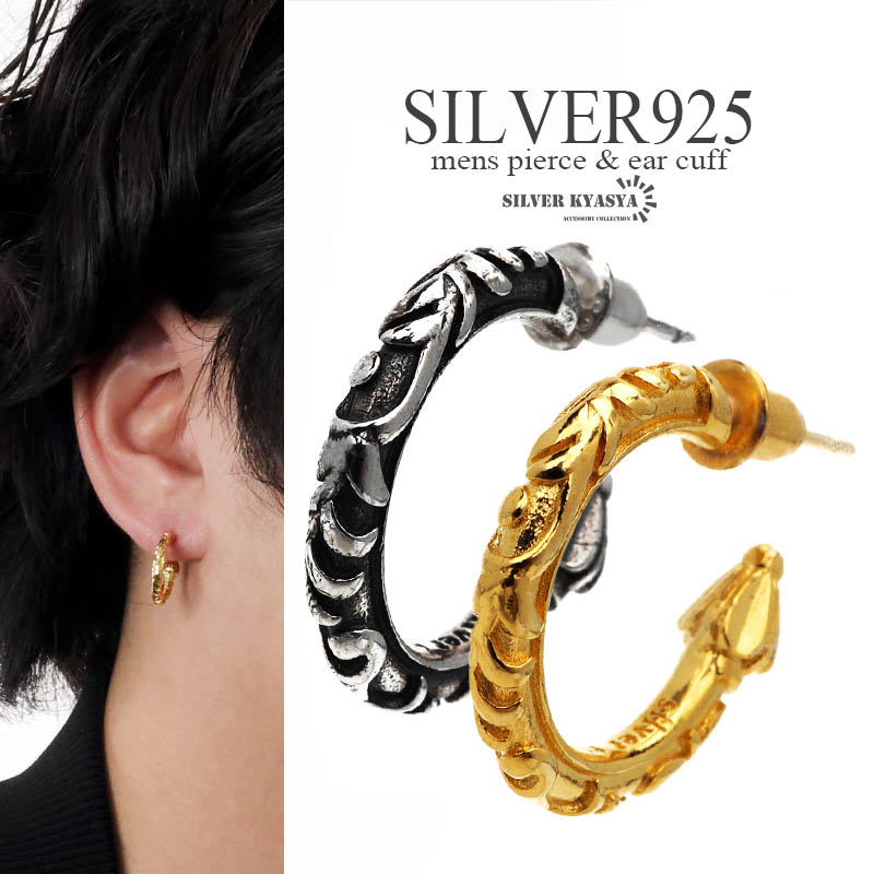 シルバー925 唐草ピアス フープピアス ゴールド シルバー 18K GP K18 メンズ シルバーピアス リングピアス 金属アレルギー対応 片耳1点