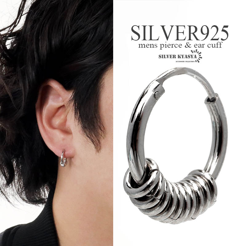 シルバー925 10連ピアス フープピアス シルバー メンズ シルバーピアス リングピアス 金属アレルギー対応 片耳1点