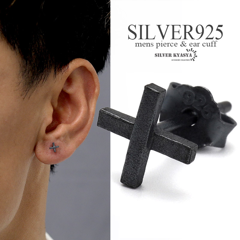 シルバー925 クロスピアス スタッドピアス 十字架 ブラック black プラスピアス 金属アレルギー 対応 片耳用