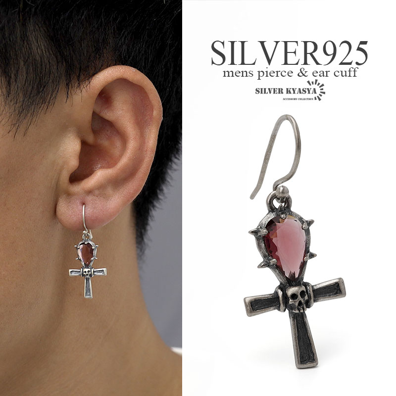 シルバー925 エジプトクロスピアス クロス キラキラ スカル シルバーピアス 揺れる 金属アレルギー 対応 片耳用