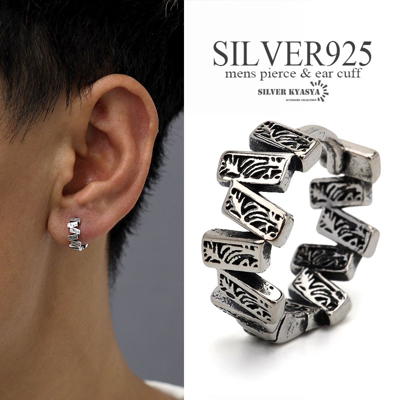 シルバー925 フープピアス 唐草 アラベスク ジグザグ silver シルバーピアス 個性的 金属アレルギー 対応 片耳用