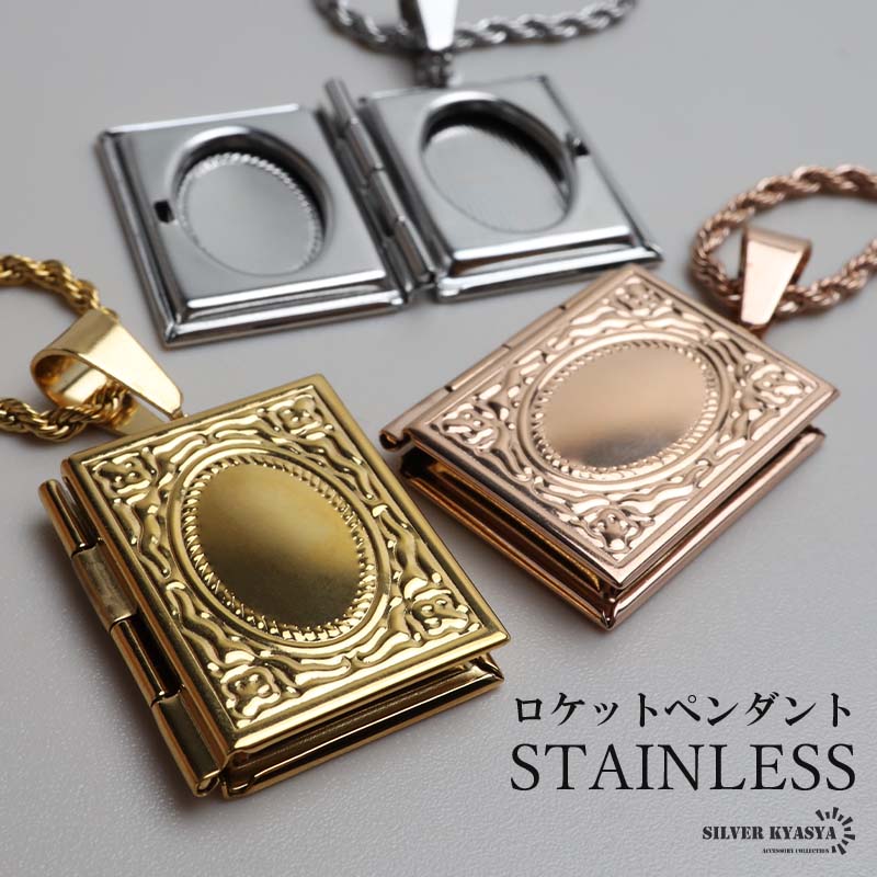 ステンレス ロケットネックレス ロケットペンダント ネックレス 写真 記念 思い出 50cm 60cm ゴールドネックレス 18KGP シルバー ピンク 金アレ対応