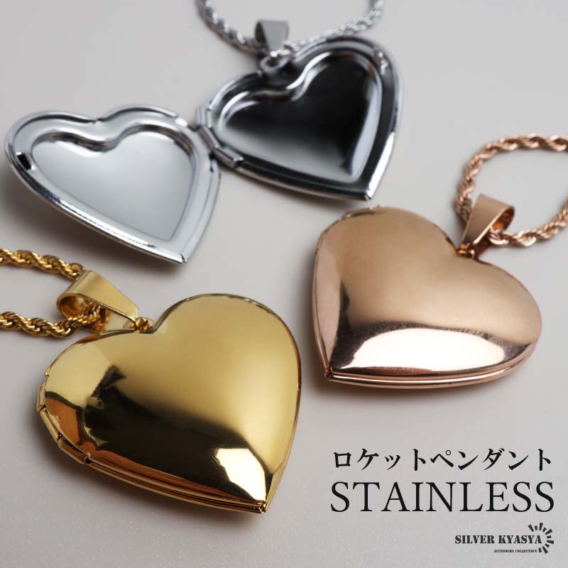 ステンレス ロケットネックレス ロケットペンダント ハートネックレス 写真 記念 思い出 50cm 60cm ゴールドネックレス 18KGP ピンク シルバー 金アレ対応