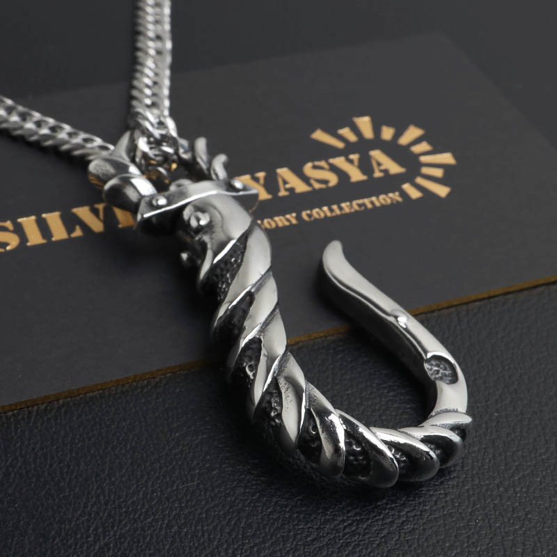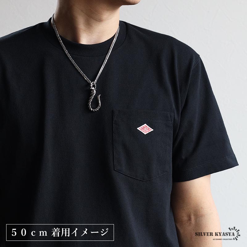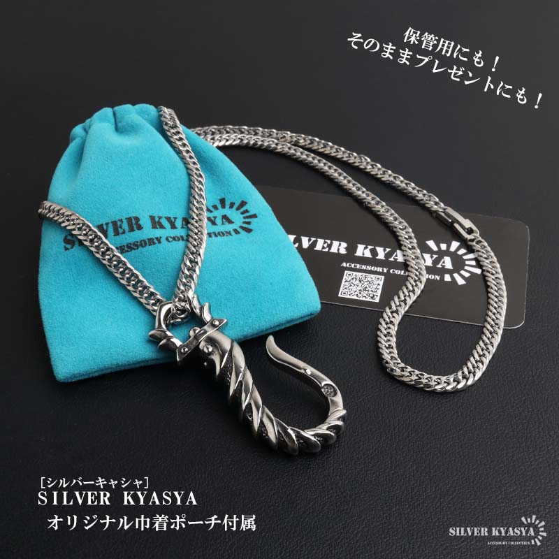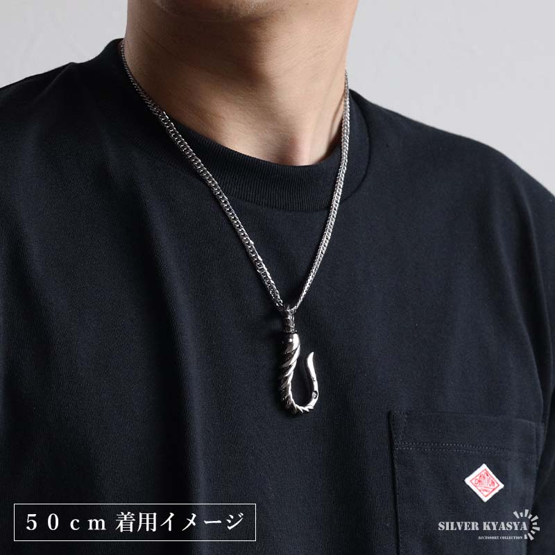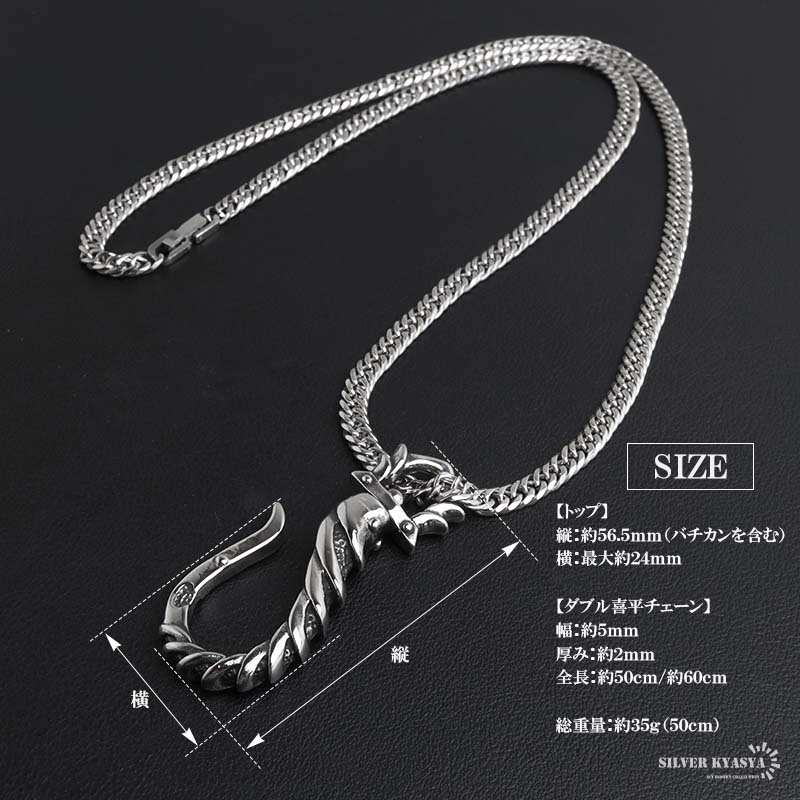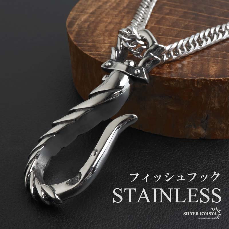 ステンレス フィッシュフック ごつめ 釣り針 ペンダントネックレス メンズネックレス シルバーアン ダブル喜平チェーン 6面カット 大きめ 金アレ対応 爆買