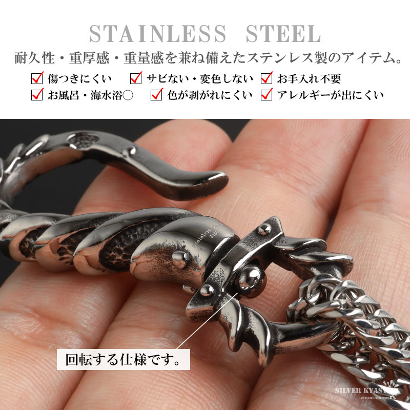 頑丈でお手入れも簡単なステンレス製アクセサリー。変色、錆びることもなくサッと拭くだけメンテもかんたん。金属アレルギーが出にくいのもポイントです。