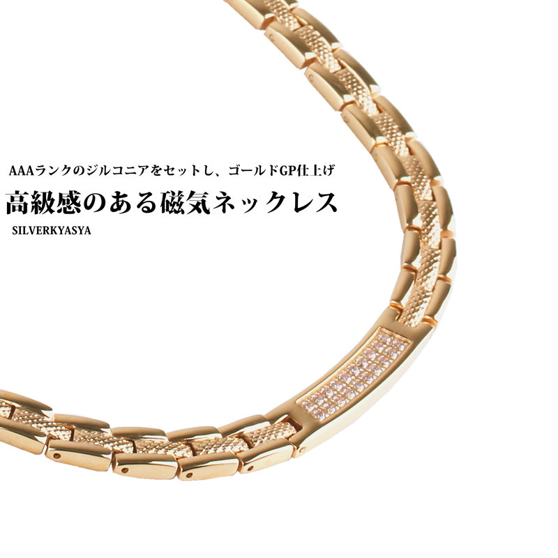 磁気ネックレス メンズ ゴールド 金 ネックレス ジルコニア CZ チタン 金属アレルギー対応 磁力 磁石 調整器具付属