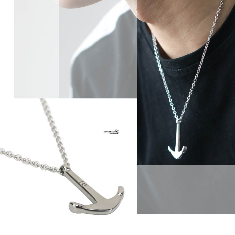 STAINLESS アンカーネックレス シルバー 錨 碇 あずきチェーン お洒落 アンカー ペンダント ユニセックス 爆買
