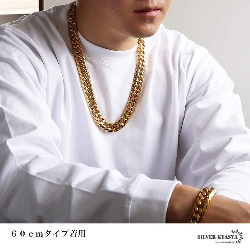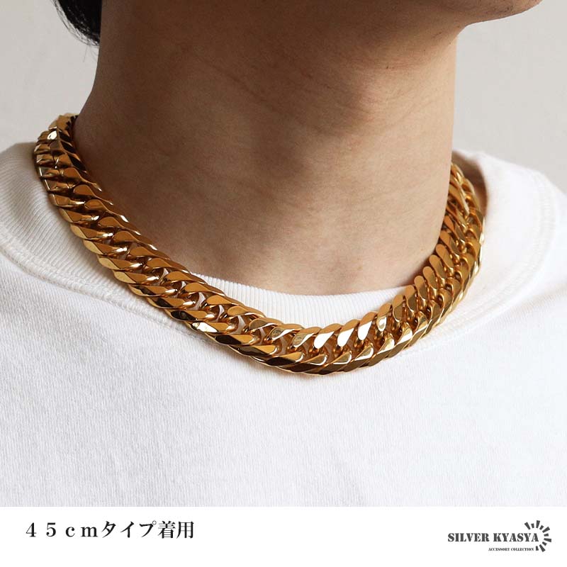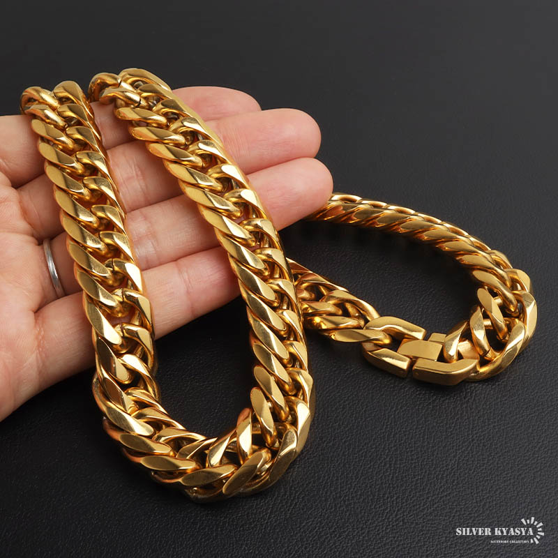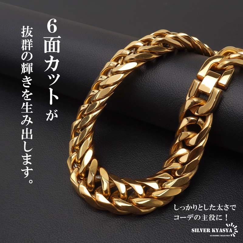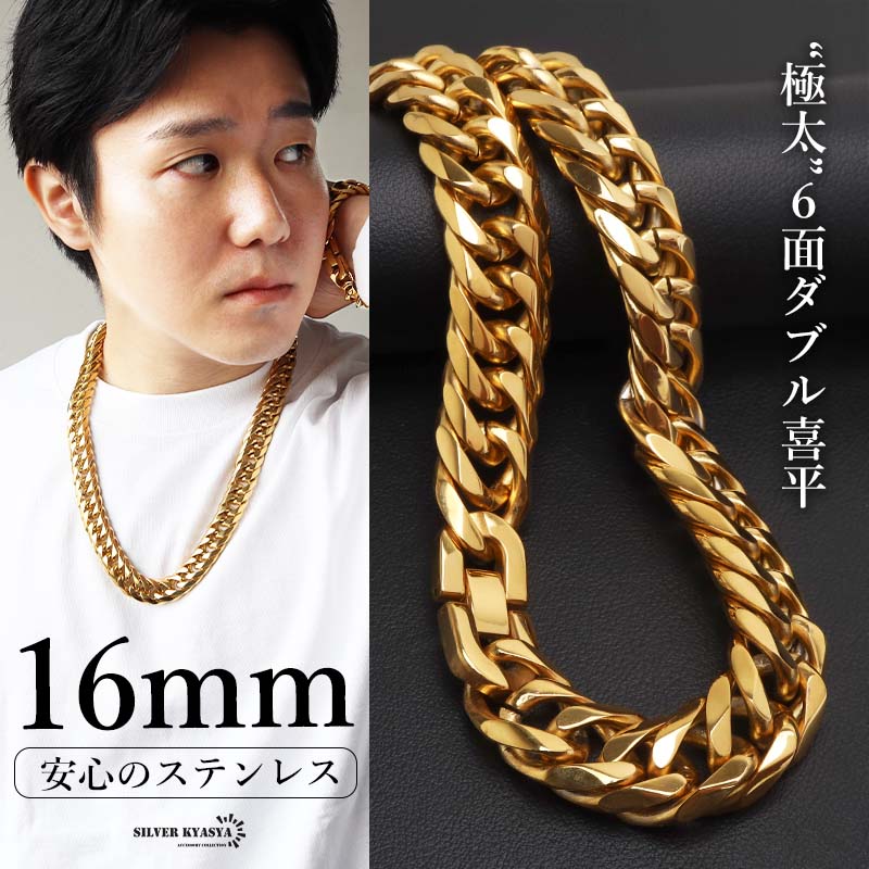 新!リニューアル ステンレス 定番 ダブル喜平ネックレス 幅16mm 極太 チェーンネックレス メンズネックレス 6面カット ゴールド 金属アレルギー対応 爆買