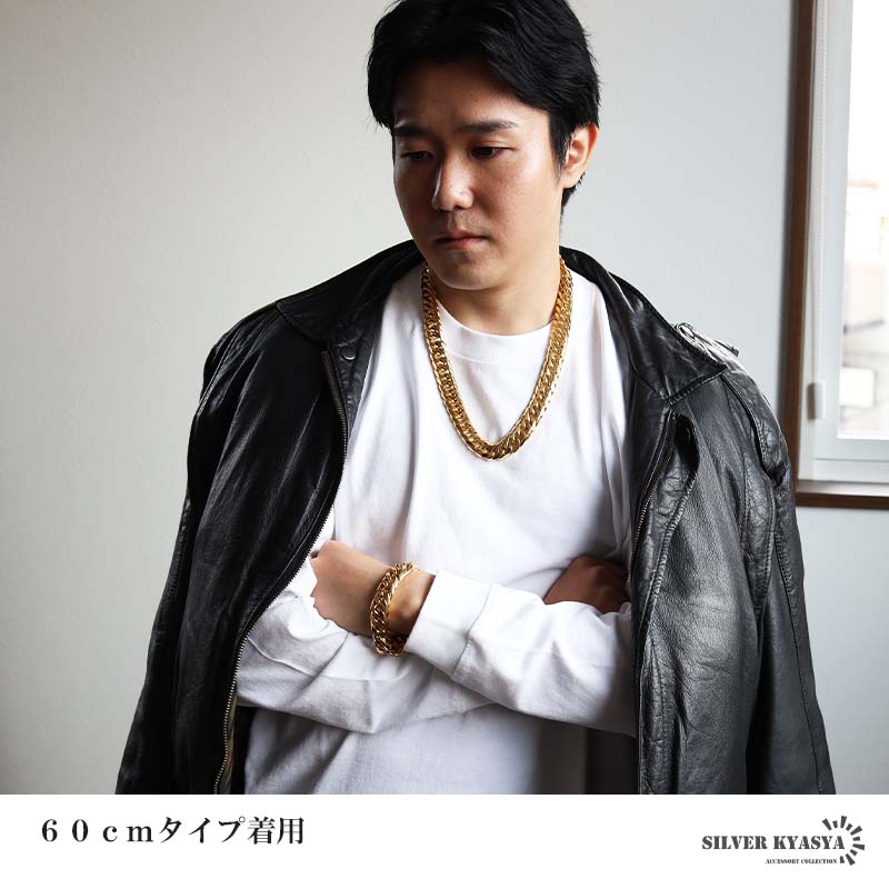 密度が濃く圧倒的な存在感が人気のダブル喜平ネックレス。6面カットの繊細な光の反射が美しいチェーンアイテムです。ステンレス製なのでつけっぱなしでも問題ございません。チェーンの長さは全3サイズからお選びいただけます。