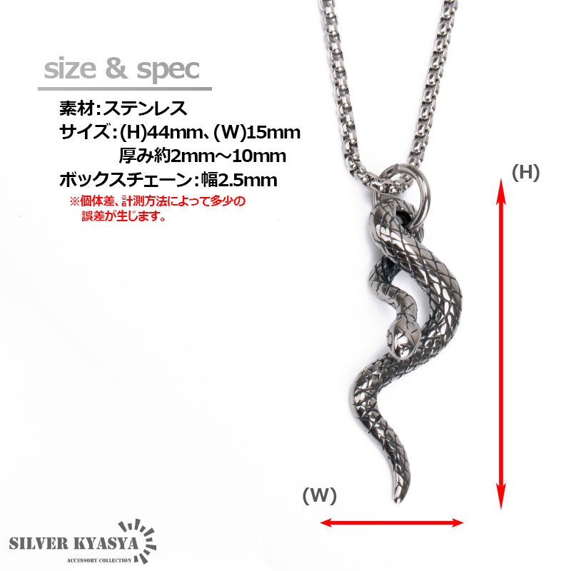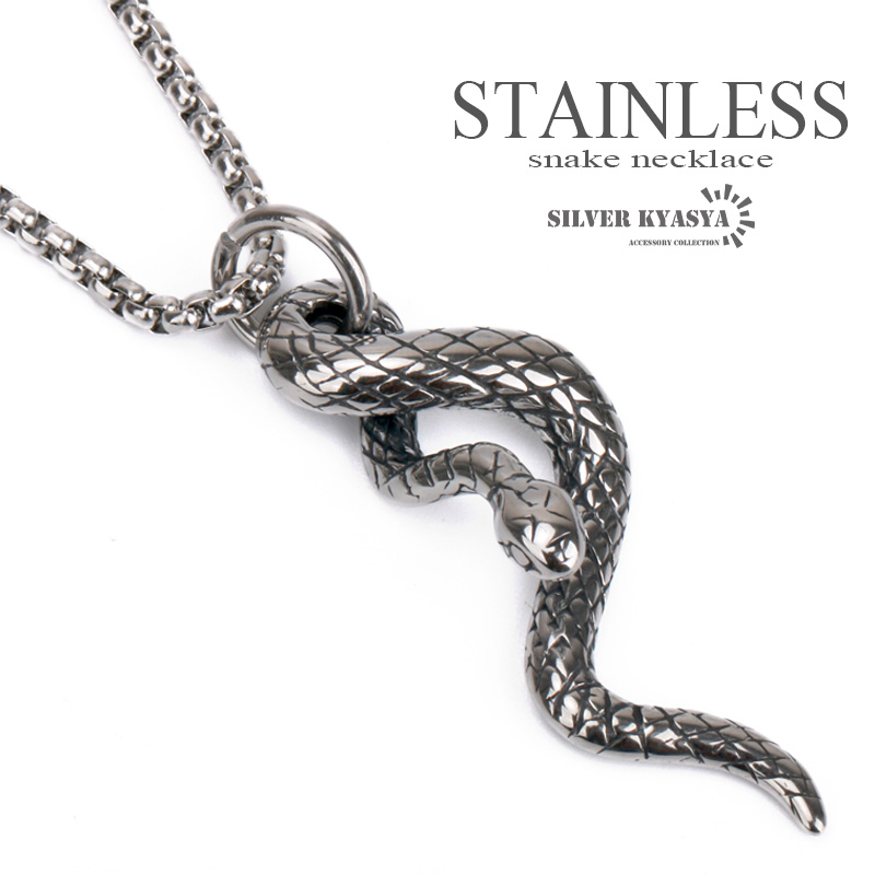 スネークペンダントネックレス ステンレス メンズ 蛇 へび 爬虫類 ネックレス アレルギー対応 アニマル ボックスチェーン 45cm 50cm