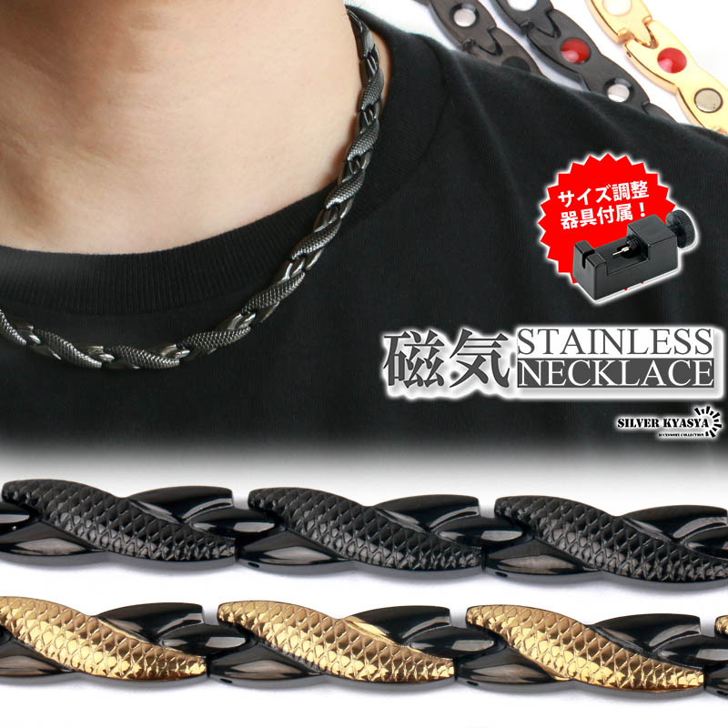 磁気ネックレス ステンレス 磁力 磁石 遠赤外線 マイナスイオン ゴールド ブラック マルチ 男性 金属アレルギー対応 調整器具付属 専用BOX付属