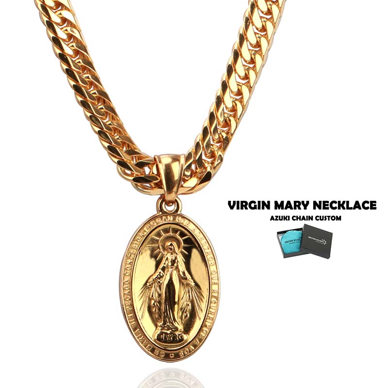 6面カット ダブル喜平ネックレス 18k gp 奇跡のメダイ ネックレス ゴールド 18金 仕上げ 聖母 メダイ ペンダント メンズ HIPHOP b系 50cm 60cm 専用BOX付属