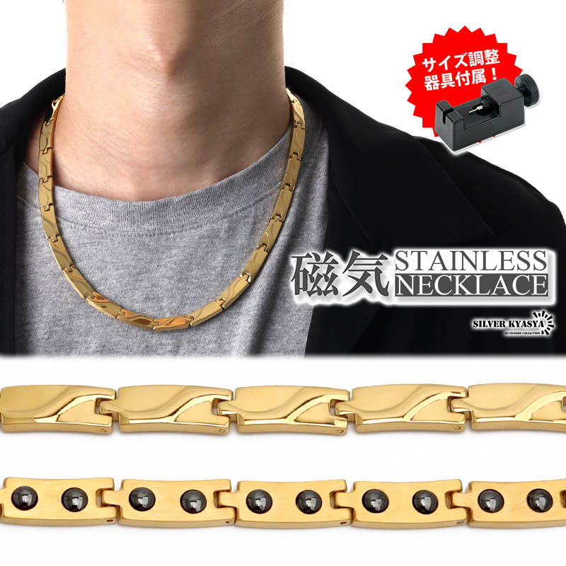磁気ネックレス ステンレス ビーズ ウェーブ 波 18k ip gold ゴールド 磁力 磁石 男性 金属アレルギー対応