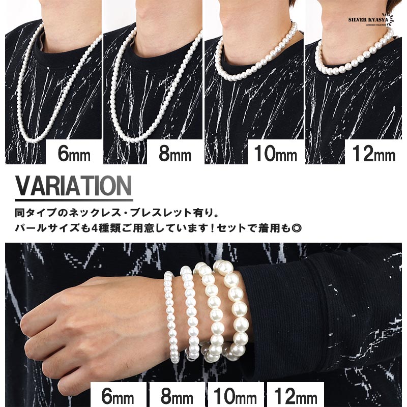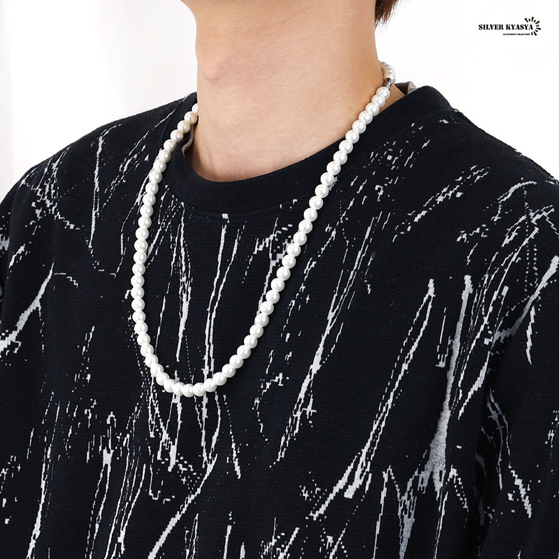 ネックレス パール メンズ 男性 アクセサリー ホワイト pearl necklace 真珠 8mm 金属アレルギー対応 ネジ式 ストリート ハード系 シンプル 爆買
