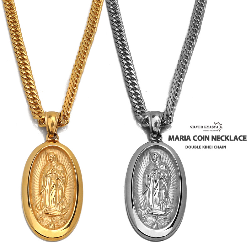 ステンレス素材 6面カット ダブル喜平ネックレス 18k gp 奇跡のメダイ ネックレス ゴールド 18金 仕上げ シルバー 聖母 メダイ ペンダント メンズ HIPHOP b系