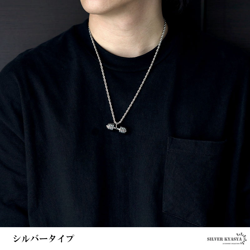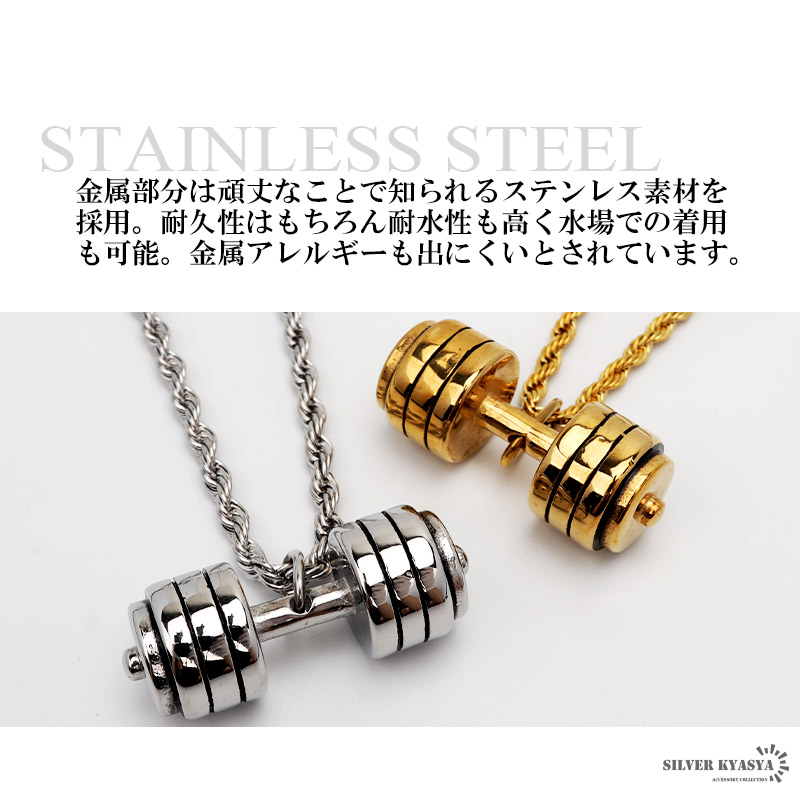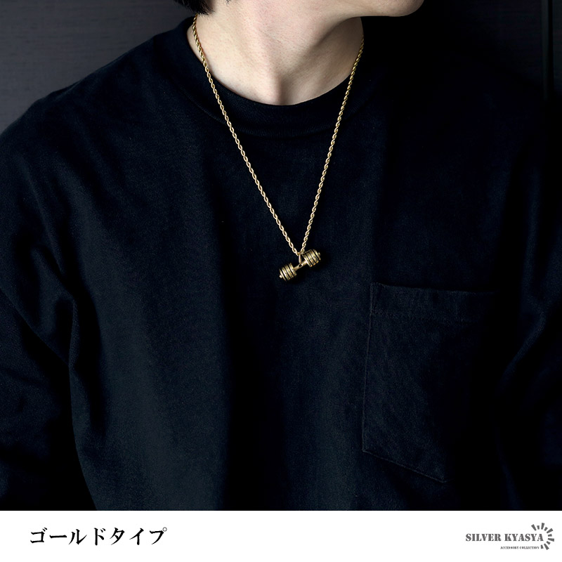 ダンベルネックレス ロープチェーン ステンレス メンズ ゴールド シルバー 金色 ツイストチェーン トレーニング 金属アレルギー対応 おしゃれ 爆買