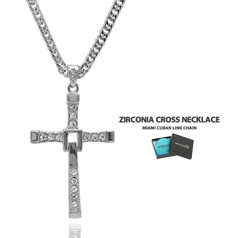 6面カット ダブル喜平ネックレス クロス ネックレス シルバー 銀 CZ ペンダント メンズ HIPHOP b系 50cm 60cm 専用BOX付属