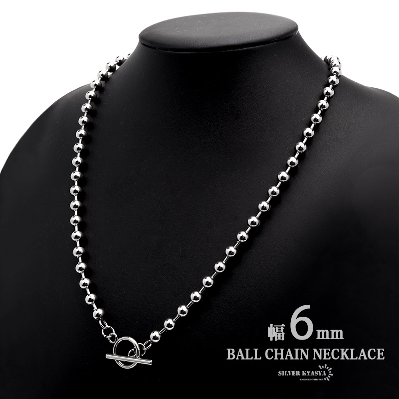 ボールチェーンネックレス ステンレス マンテル メンズ ネックレスチェーン ラージボール 幅6mm 重厚感 普段使い シルバー 銀