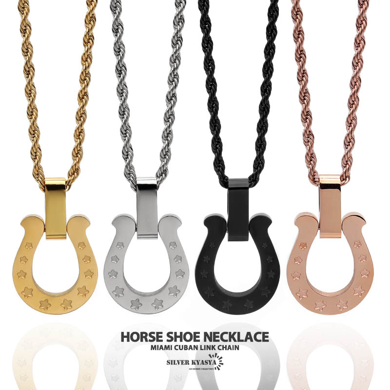 馬蹄ネックレス 316L サージカルステンレス ホースシュー 星 スター ロープチェーン 日常使い 普段使い IP メンズ レディース 金属アレルギー対応
