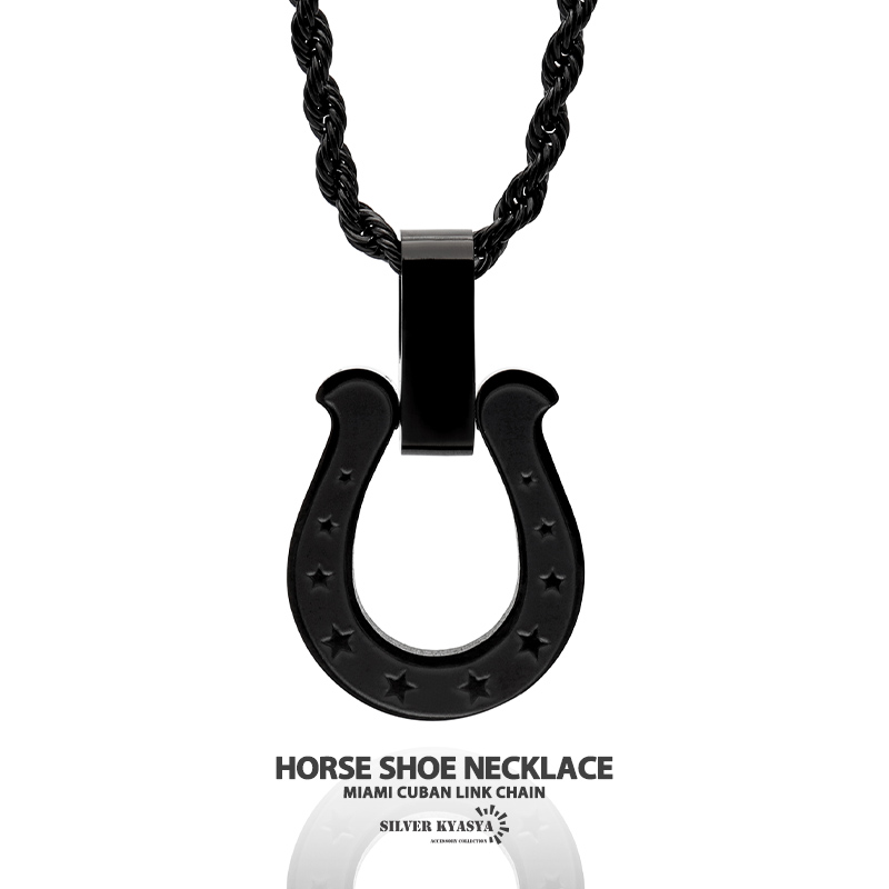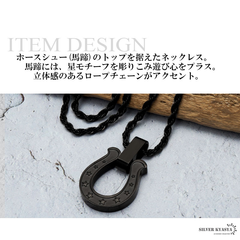 馬蹄ネックレス 316L サージカルステンレス ホースシュー マット 星 スター ロープチェーン 日常使い 普段使い IP ブラック 黒 メンズ 金属アレルギー対応