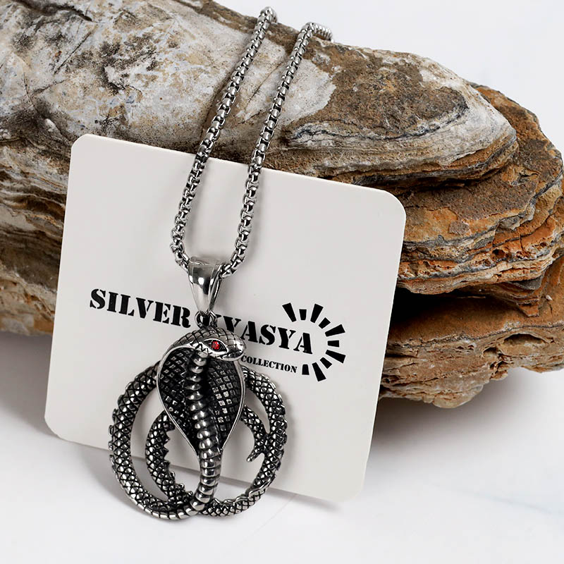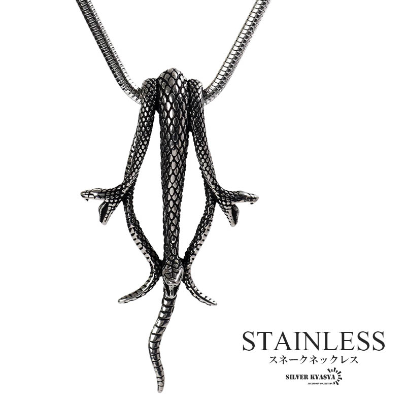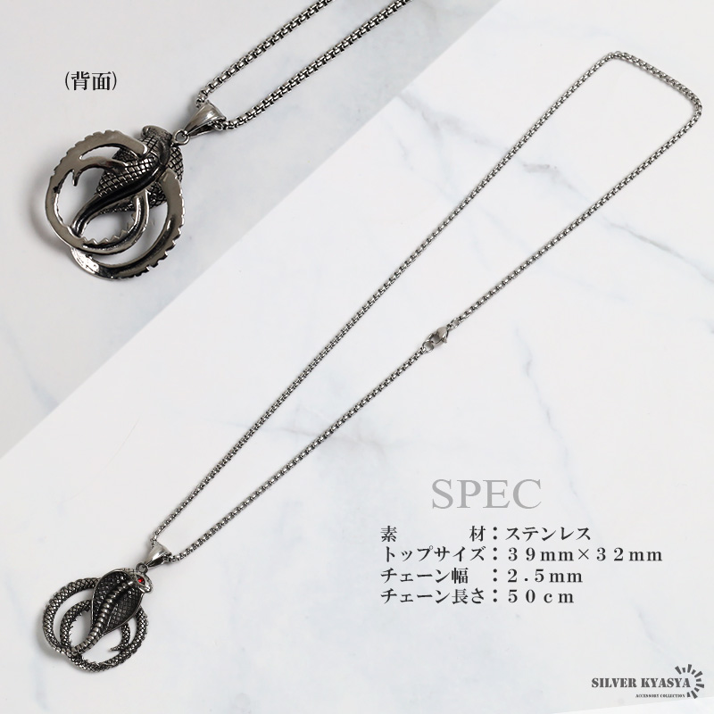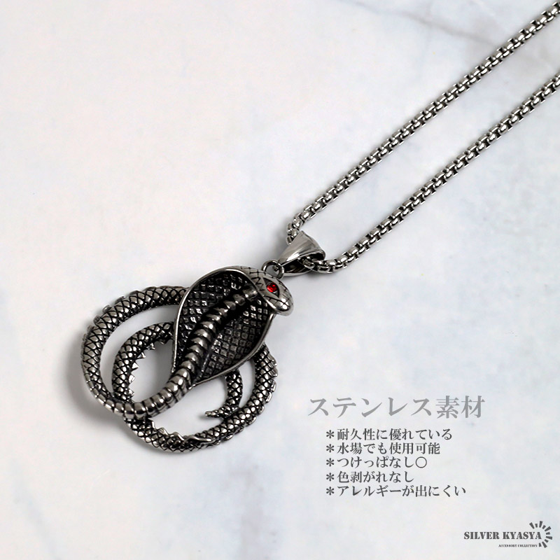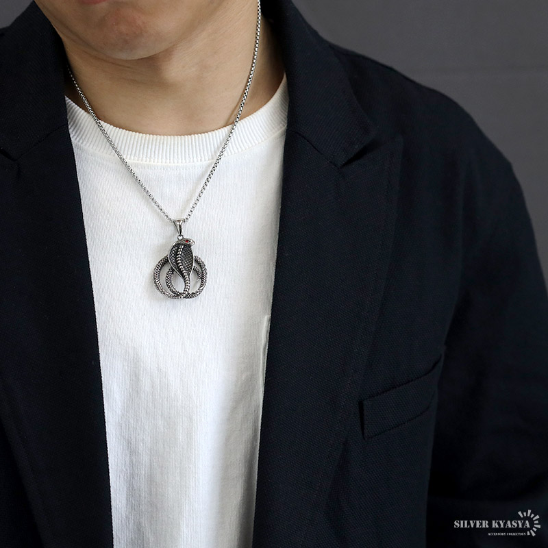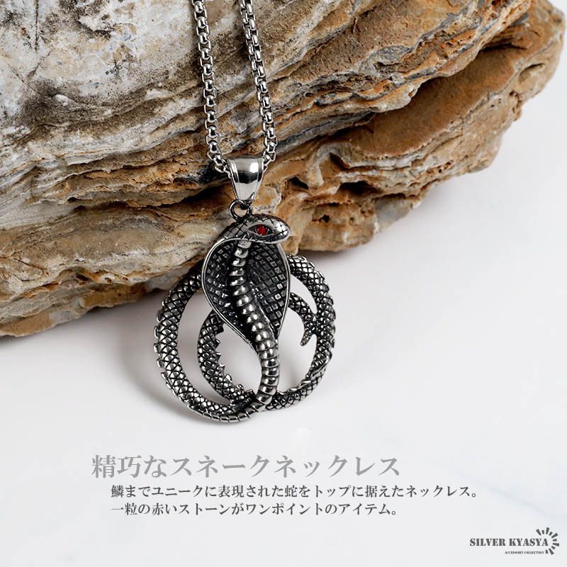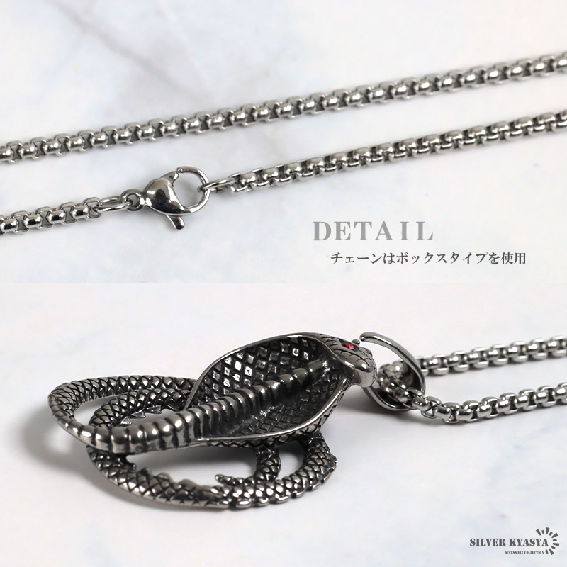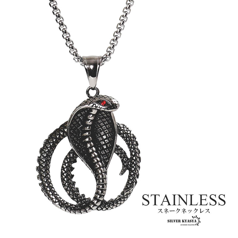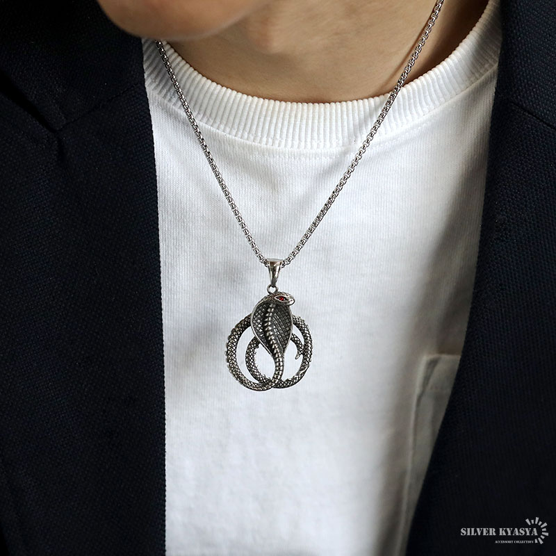 ステンレス スネークネックレス メンズ シルバー 蛇 ペンダント コブラ ベネチアンチェーン 付き 爆買