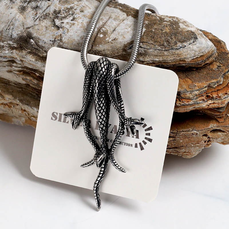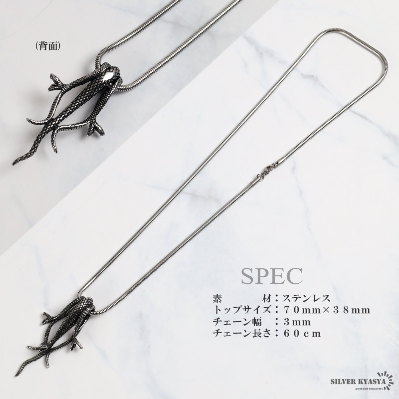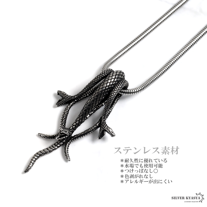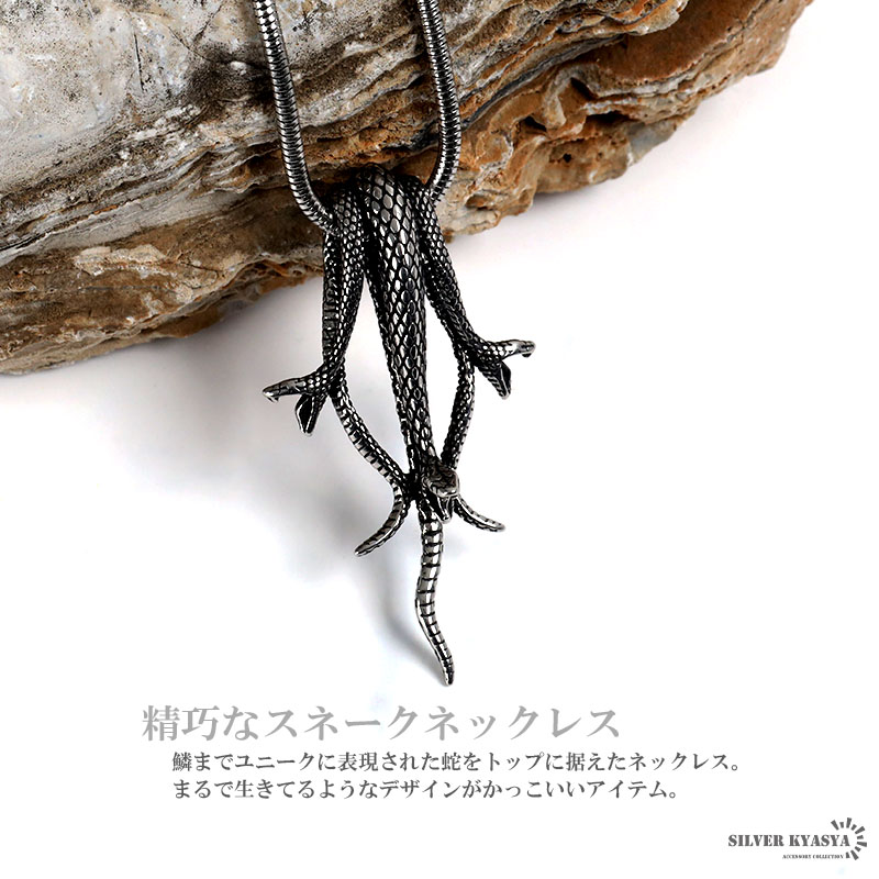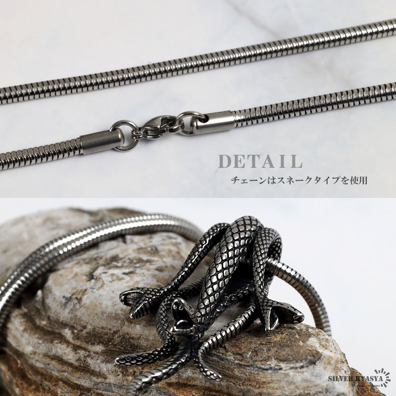 ステンレス スネークネックレス メンズ シルバー 蛇 ペンダント 三連ネックレス スネークチェーン 付き 爆買