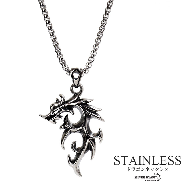 ステンレス ドラゴンネックレス シルバー 龍 ペンダント竜 伝説 炎 メンズネックレス かっこいい ベネチアンチェーン付き 爆買