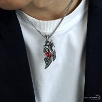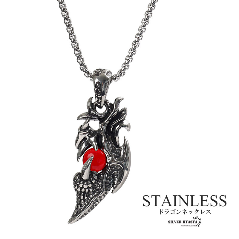 ステンレス 龍の爪 ネックレス シルバー ごつい ガーネット ペンダント ドラゴンネックレス 渋い レッドストーン 爆買
