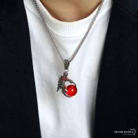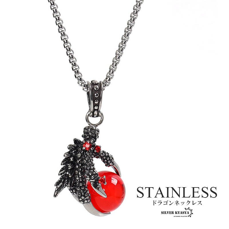 ステンレス 龍の爪 ネックレス シルバー ごつい ガーネット ペンダント ドラゴンネックレス レッドストーン 渋い 爆買