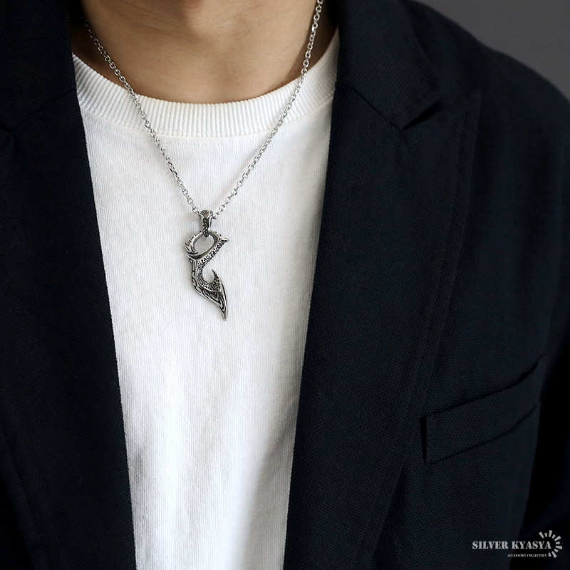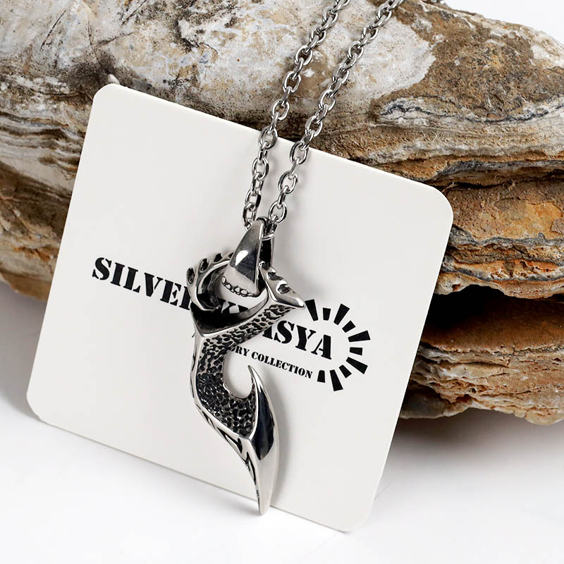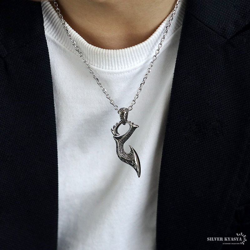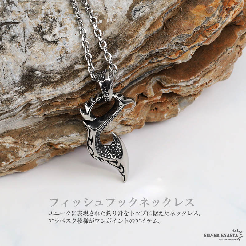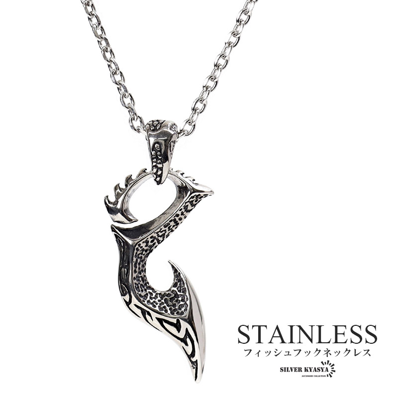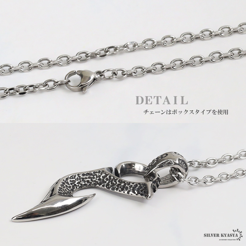 ステンレス 釣り針 ネックレス 唐草 ペンダント 炎 フィッシュフックネックレス ペンダント 小豆チェーン付き 爆買