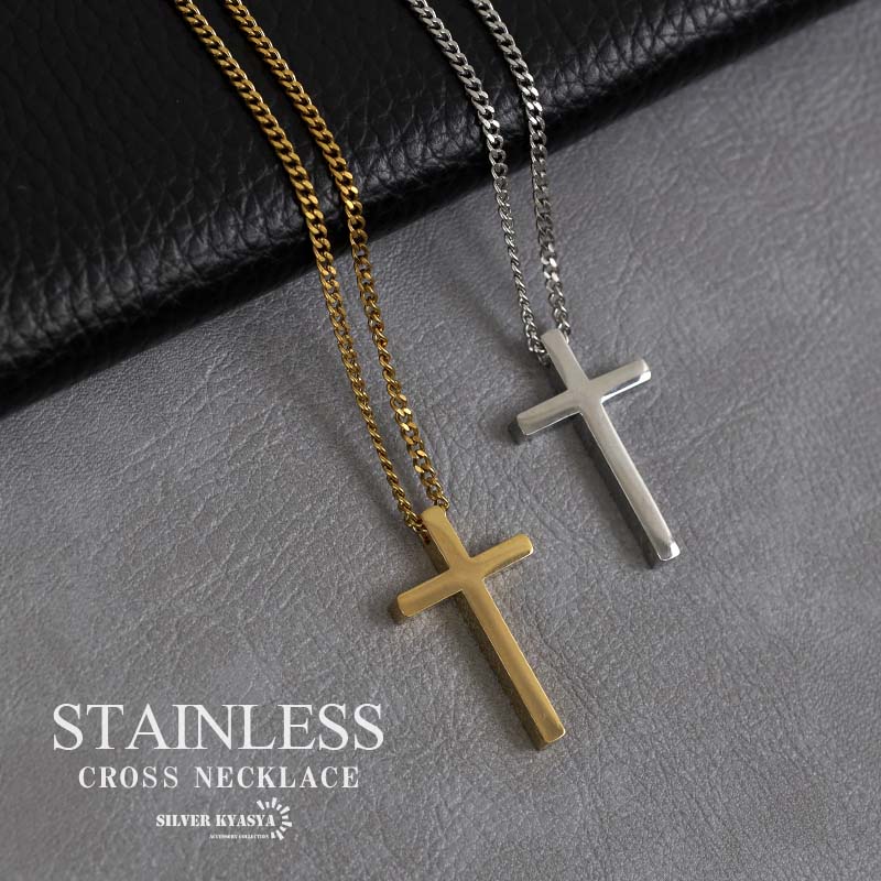 クロスネックレス ステンレス チェーンネックレス メンズ ゴールド シルバー 十字架 ネックレス 喜平チェーン シンプルネックレス 金属アレルギー対応