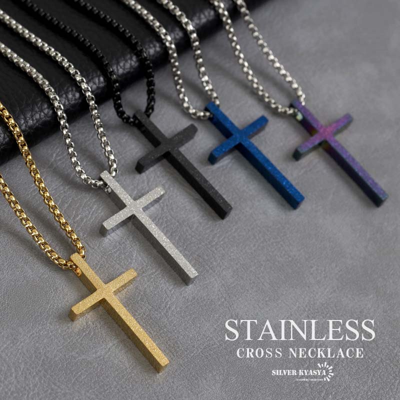 グリッター クロスネックレス ステンレス チェーンネックレス ゴールド シルバー 十字架 ネックレス キラキラ クロス シンプルネックレス 金属アレルギー対応