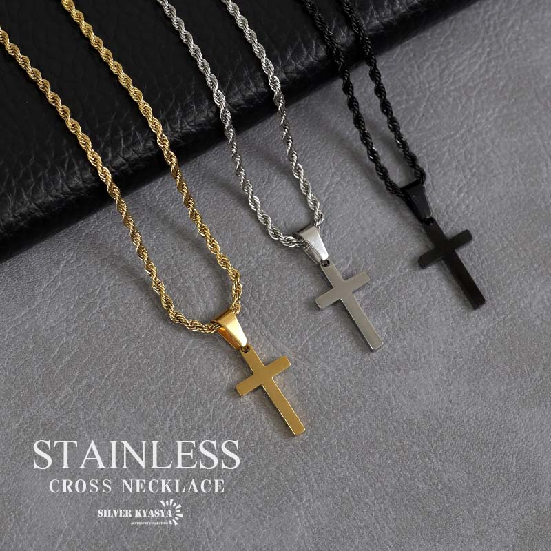 クロスネックレス ステンレス チェーンネックレス ゴールド シルバー 十字架 ネックレス 小さめ ロープチェーン シンプルネックレス 金属アレルギー対応