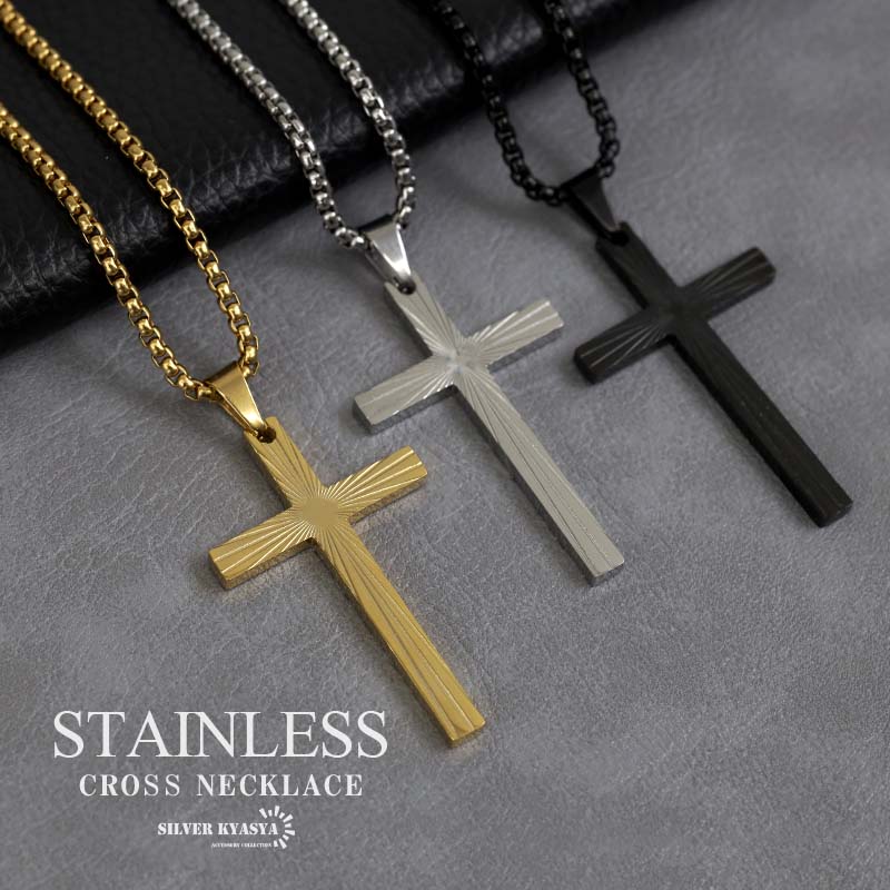 クロスネックレス ステンレス チェーンネックレス ゴールド シルバー 十字架 ネックレス 立体感 放射状 クロス シンプルネックレス 金属アレルギー対応