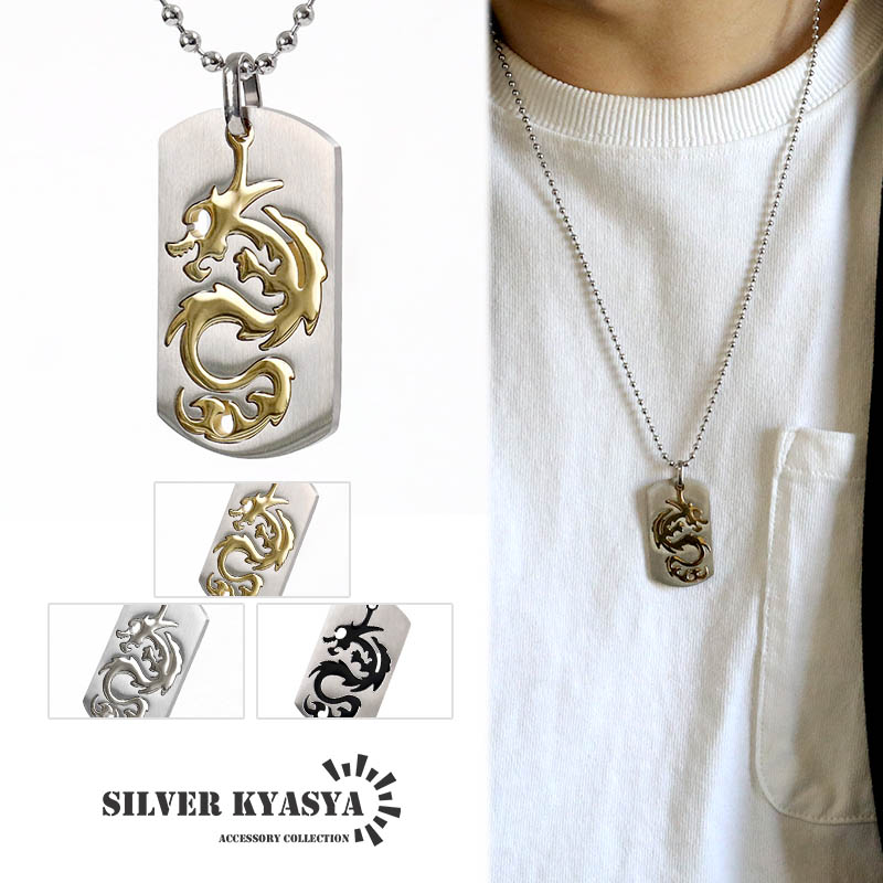 ドラゴンネックレス 龍 ペンダント ドッグタグネックレス メンズ 男性ネックレス 龍 竜 伝説 炎 金色 銀色 つけっぱなしok ステンレス製