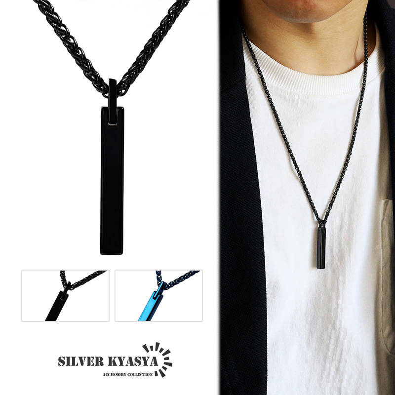 タングステン スティックネックレス スピガチェーン ブラック ブルー メンズ メタリック シンプル プレーン 重量感 丈夫 ステンレス