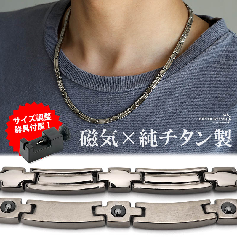 純チタン 磁気ネックレス シルバー Titanium チタンネックレス 軽い 首にフィット 負担がない 磁力 磁性