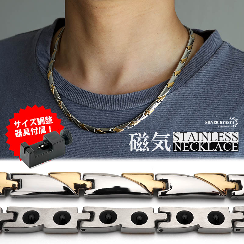 磁気ネックレス シルバー ゴールド チェーンネックレス ステンレス製 磁気 磁石 磁性 マグネット