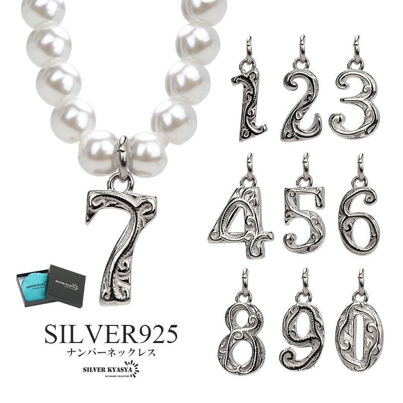 ナンバーネックレス パールネックレス シルバー ステンレス シルバー925 数字ネックレス 真珠 ハワイアンネックレス 専用BOX付属 爆買