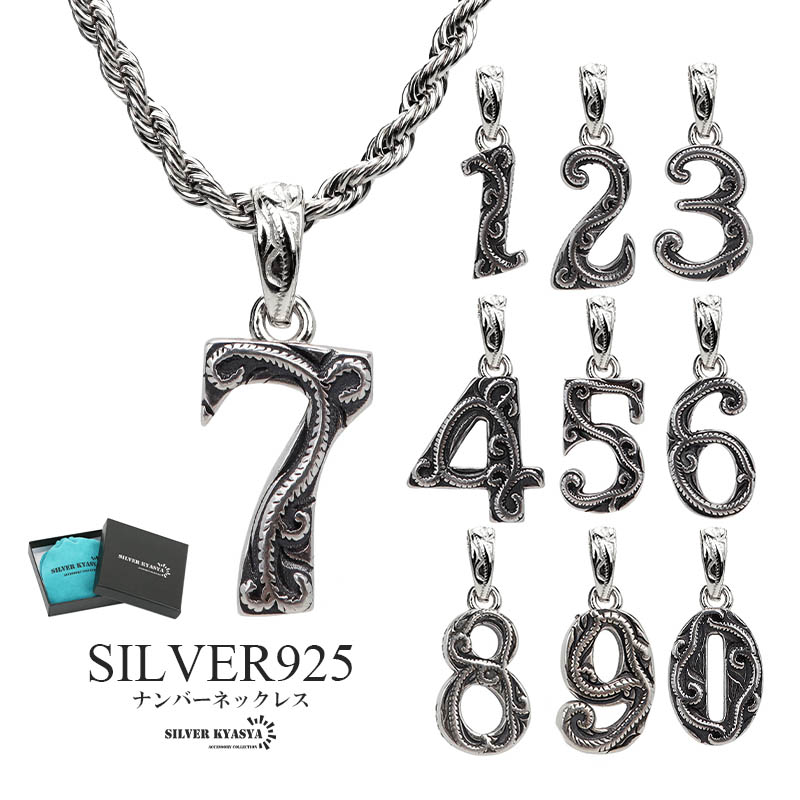ナンバーネックレス ハワイアンネックレス アンティークシルバー ステンレス シルバー925 数字ネックレス ロープチェーン 専用BOX付属 爆買